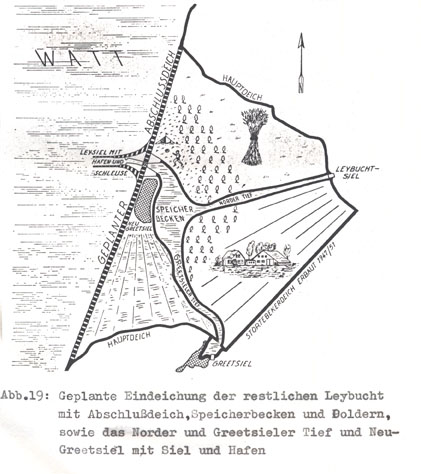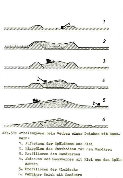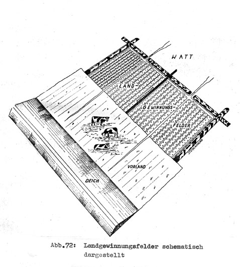 „Im 20. Jahrhundert trat als Folge des technischen Fortschrittes eine Änderung in den Methoden des Deichbaus und der Neulandgewinnung ein, die sich u.a. auch auf die Auswahl der einzudeichenden Flächen auswirkte.“ 1) Ohling, S. 58