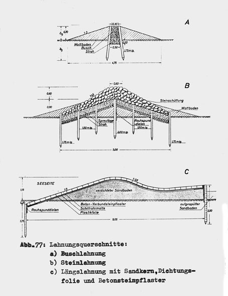 Über die Art des Deichbaus liegen uns vom 17. Jahrhundert an detaillierte Berichte vor. Von Münch, Brahms und Hinrichs haben uns aus der Zeit seit dem Ende dieses Jahrhunderts ausführliche Schilderungen überliefert, die dann bis zur Gegenwart hin fortgesetzt worden sind. Doch da bereits seit dem Beginn des Deichbaus die spezifische Situation eines zu bedeichenden Gebietes eine entscheidende Rolle bei der Planung und Ausführung der Arbeiten spielte, kann man von einer absoluten Allgemeingültigkeit der beschriebenen Baumaßnahmen nicht sprechen.