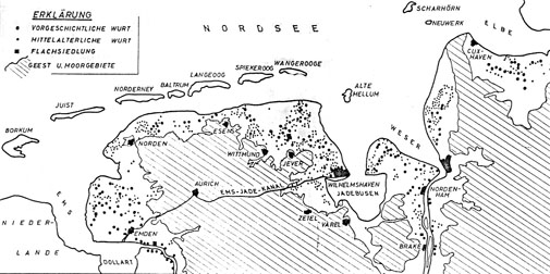 Grabungen des Landesinstitutes für Marschen und Wurtenforschung in Wilhelmshaven haben ergeben, dass z.B. die Marsch oberhalb von Emden um 500 v. Chr. in Form einer Flachsiedlung besiedelt war.